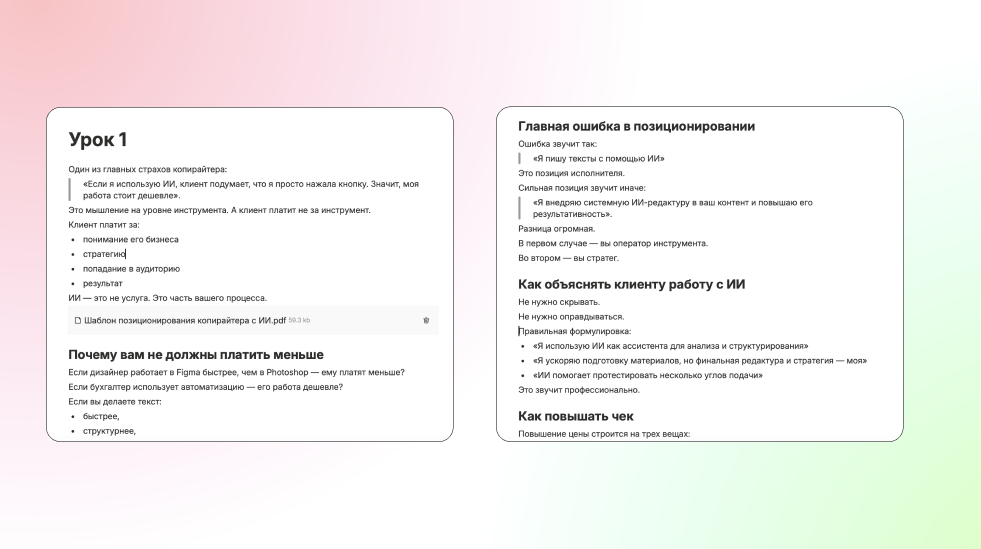 При этом даже опытные блогеры хранят идеи хаотично: в заметках телефона, в Telegram-чате «для себя», в Google Docs. Через месяц найти нужную мысль сложно. А потом на создание продукта уходит больше времени, чем могло бы.