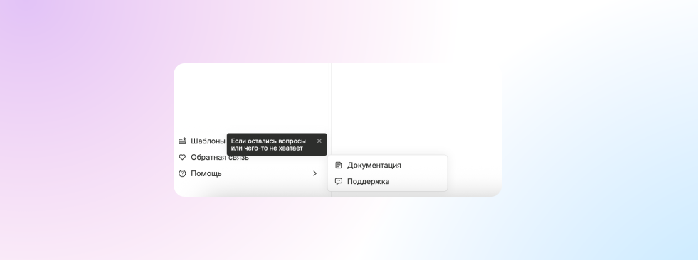 Если что-то пошло не по плану, обратитесь в нашу поддержку, мы поможем: панель меню → Помощь → Поддержка.