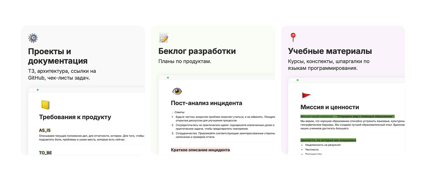 В Collabis можно создавать базу знаний, делать онбординги для новичков и коллег, а также планировать и вести работу всей командой.