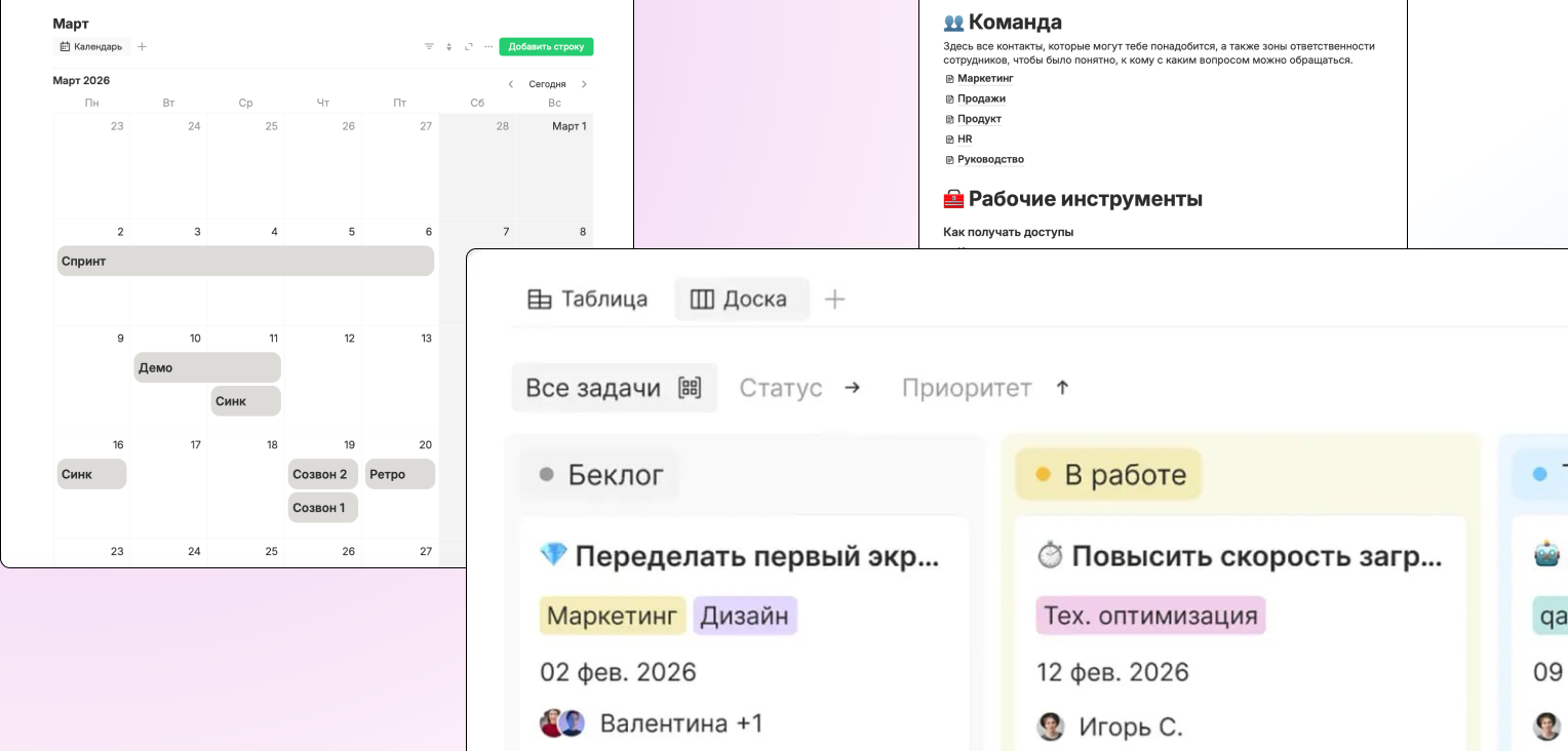 Notion — гибкий, но сложный. Подходит техническим командам, которые готовы потратить время на настройку. Серверы за рубежом.