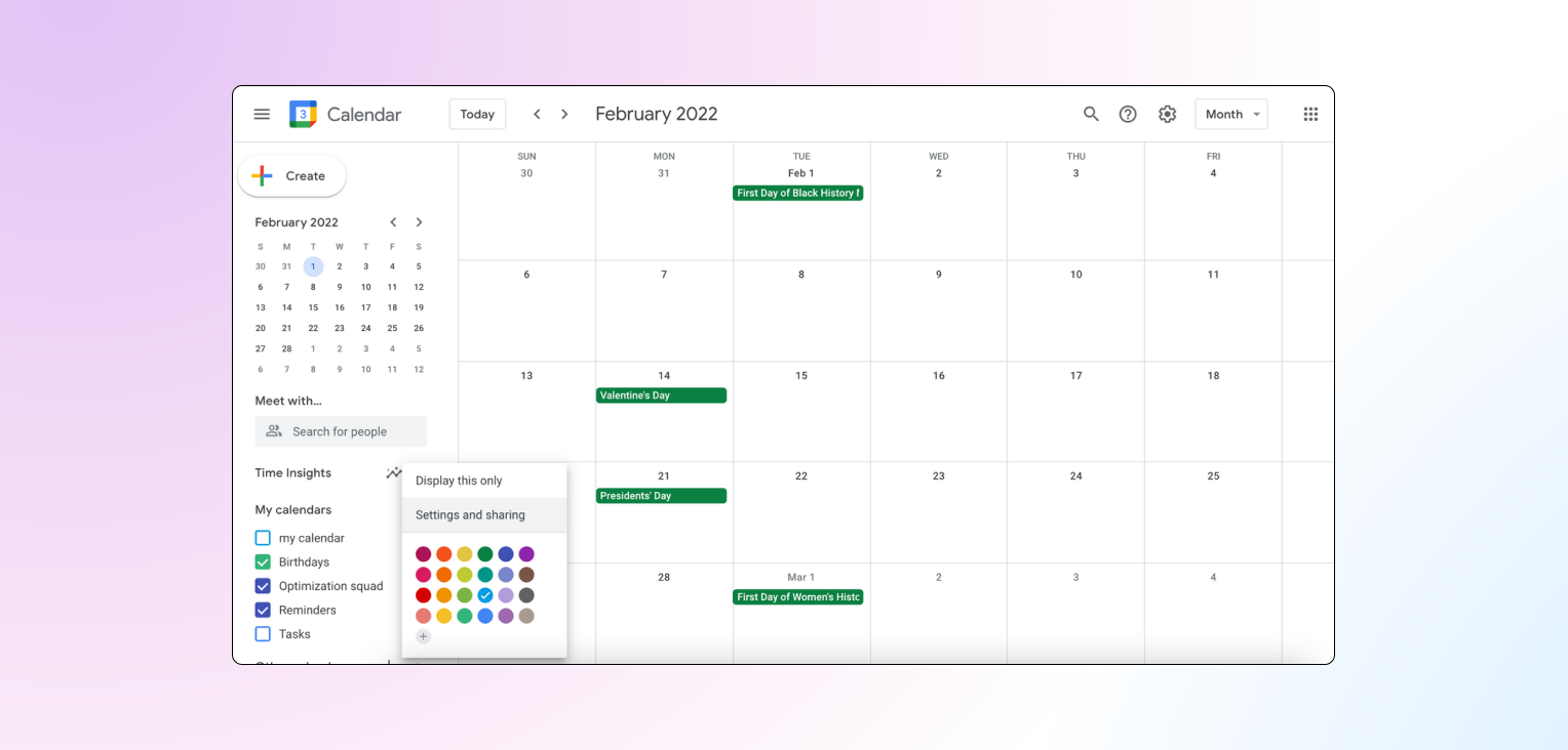 5. Google Calendar — минималистичный вариант