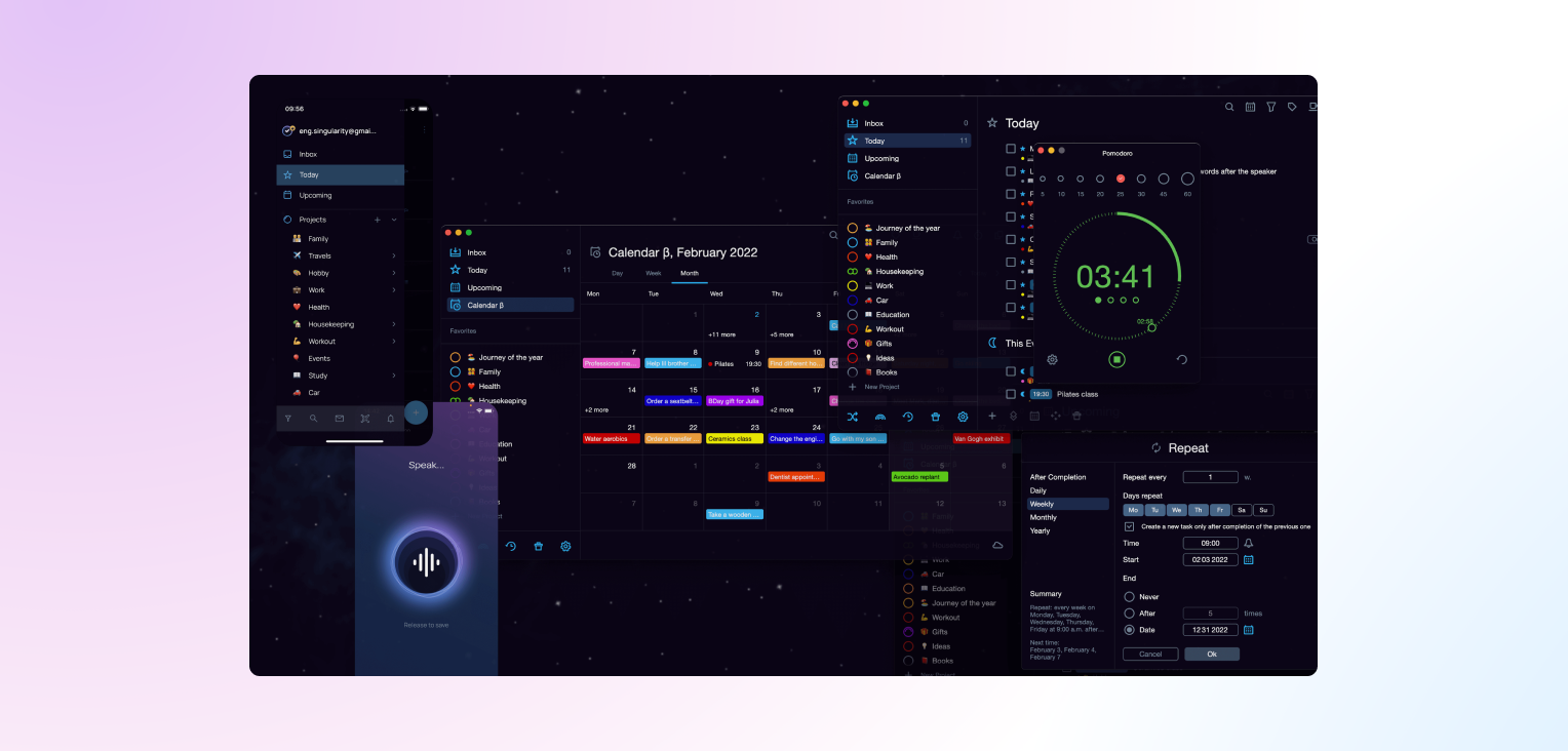 SingularityApp — отечественный планер, построенный на методологии GTD (Getting Things Done). Поддерживает бесконечную вложенность задач и двустороннюю синхронизацию с Google Calendar.