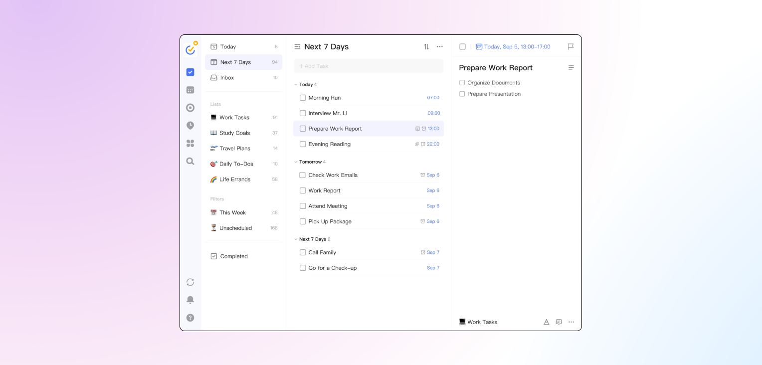 TickTick — мощный планировщик, который кроме задач предлагает трекер привычек и встроенный таймер Помодоро. Отличный выбор для тех, кто работает по методологии GTD.